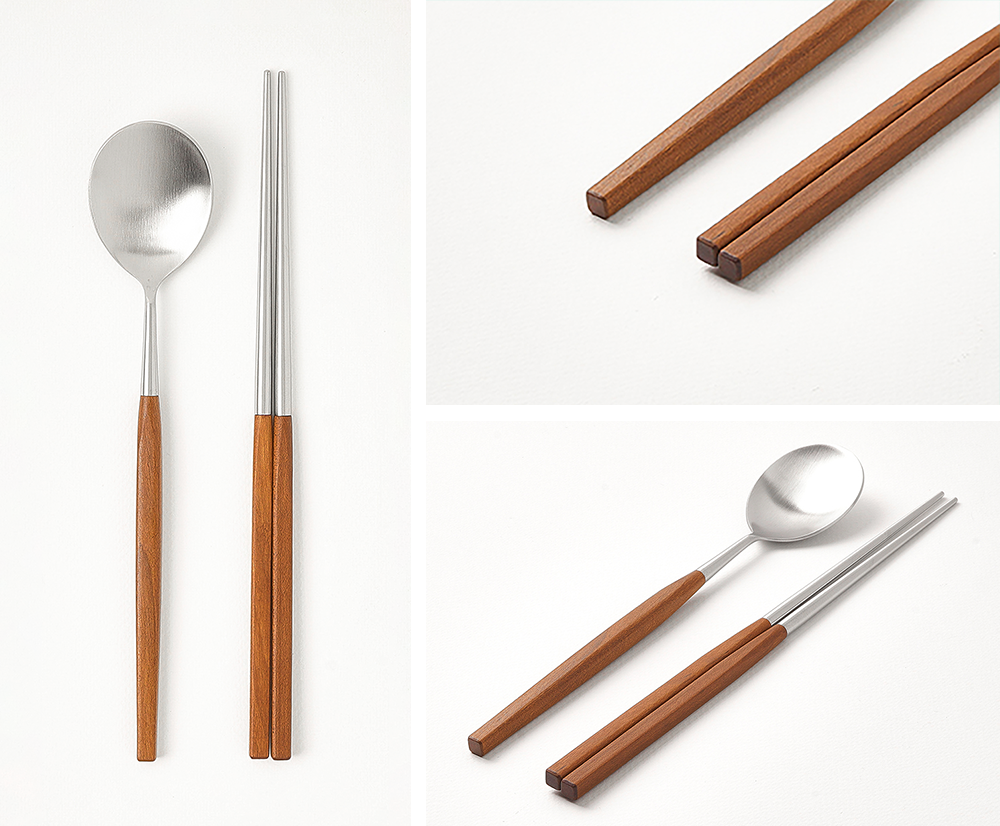 깔끔하고 모던한 사각 쉐입의 디자인과 하드메이플 특유의 무늬와 옻칠로 고급진 빛깔이 특징인 수저세트 입니다. 손에 무리가 가지 않는 적당한 두께와 무게감과 모서리를 부드럽게 라운딩 처리한 사각 쉐입으로 손쉽고 편안하게 사용할 수 있는 실용성, 디자인 모두 갖춘 수저 세트 입니다.