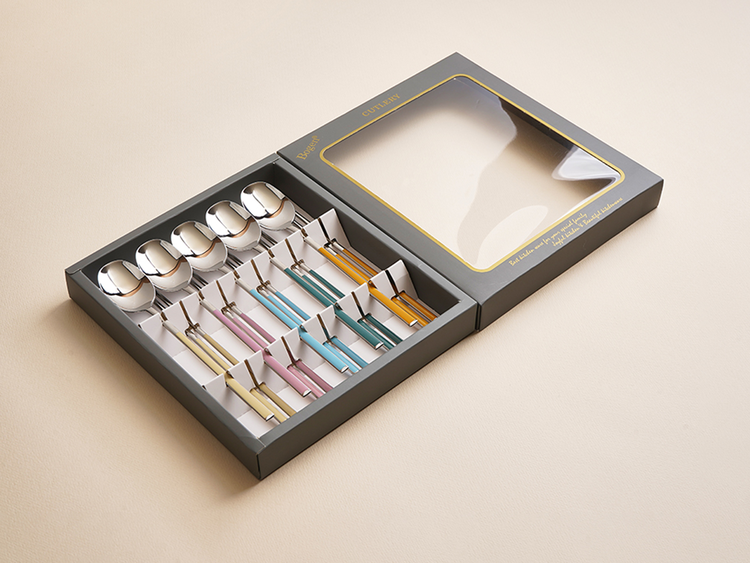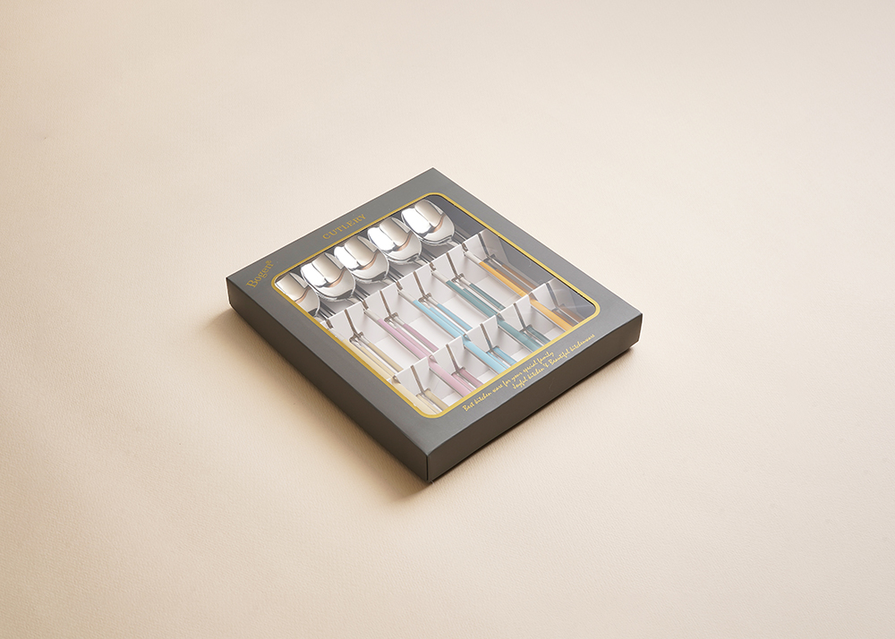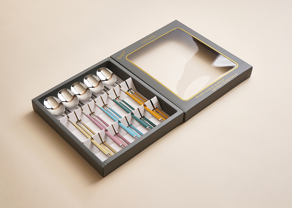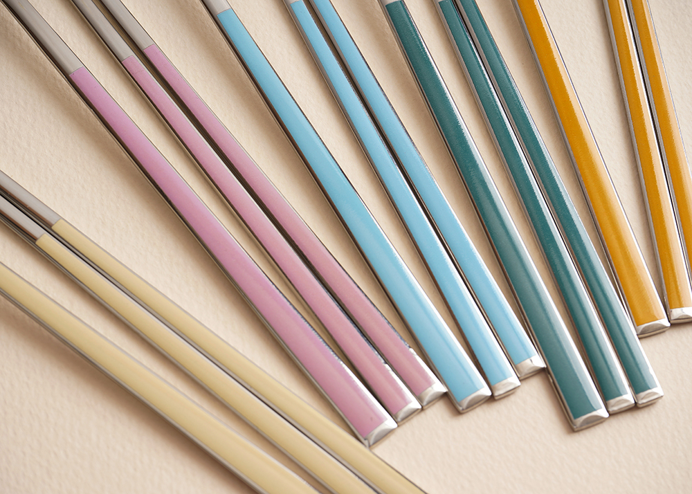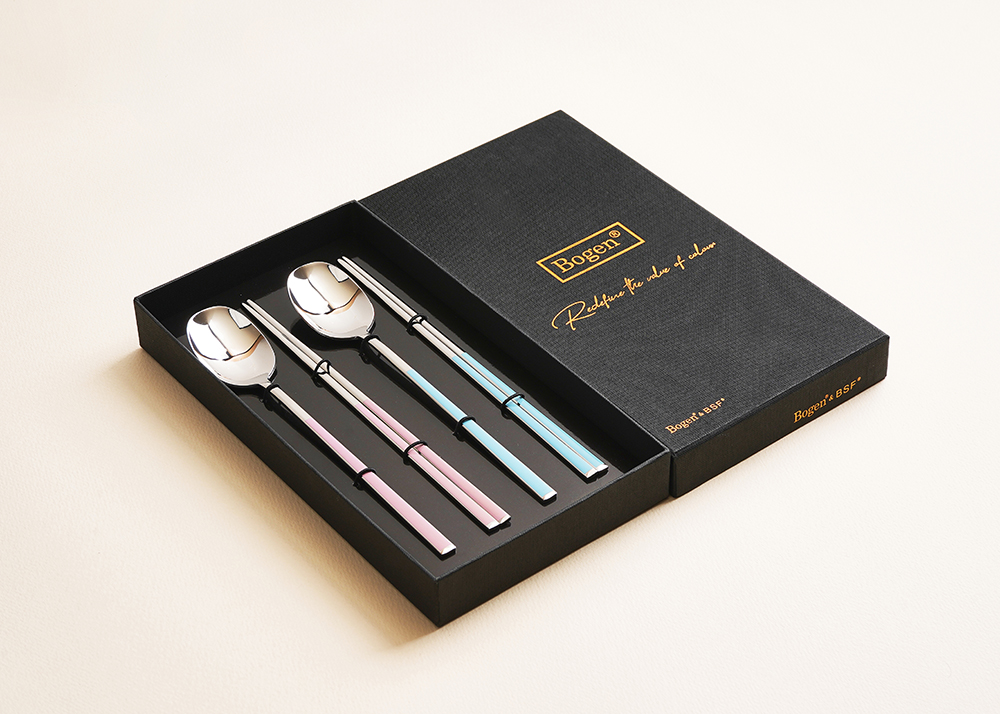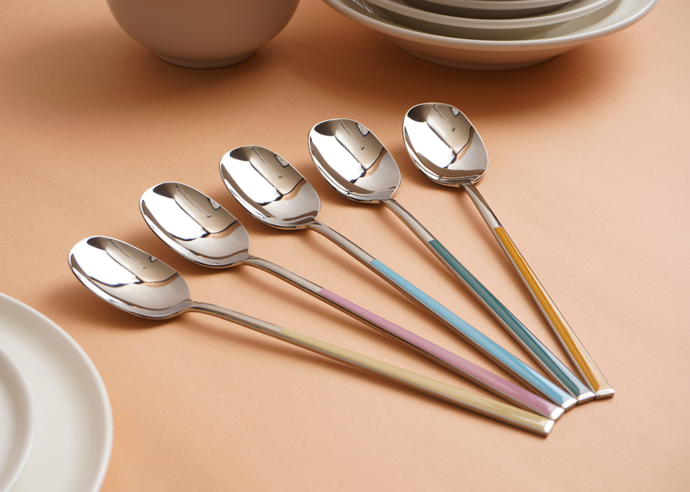 유광 처리된 육각 형태의 스텐에 세라믹을 입혀 깔끔하고 모던한 수저 세트 입니다. 적당히 가벼운 무게감으로 손이 매우 편하고 한식 테이블에 아주 적합한 디자인 입니다.