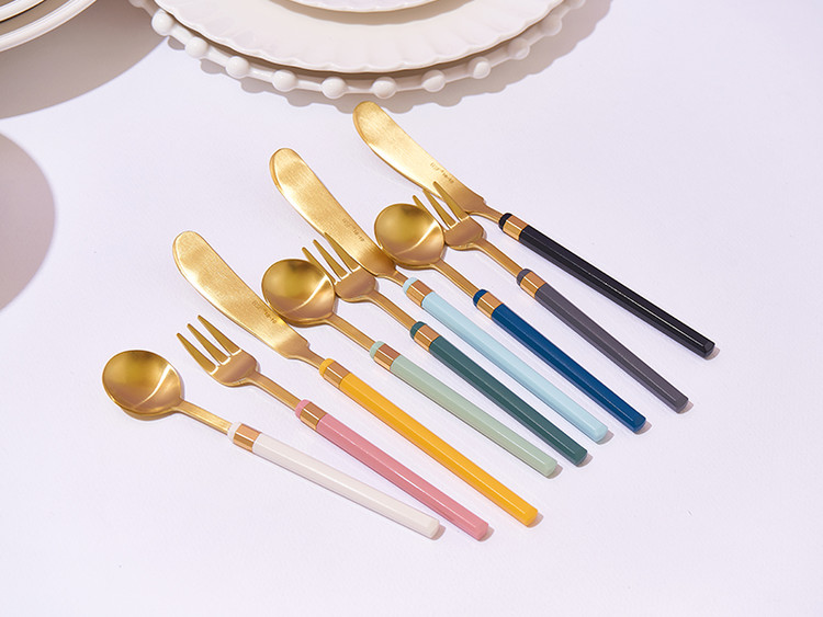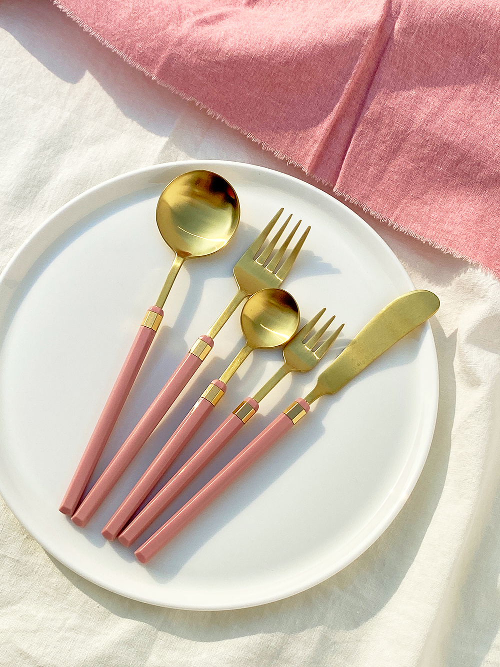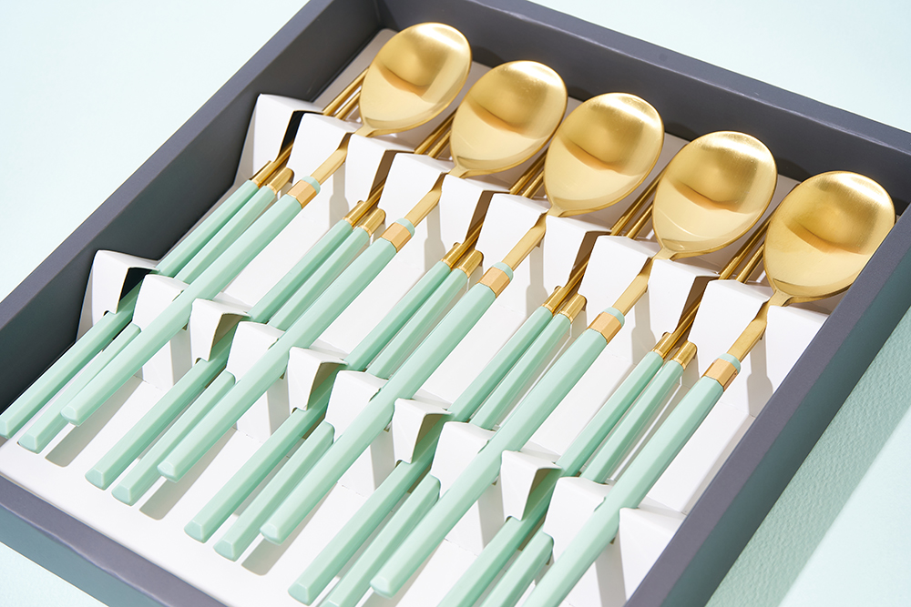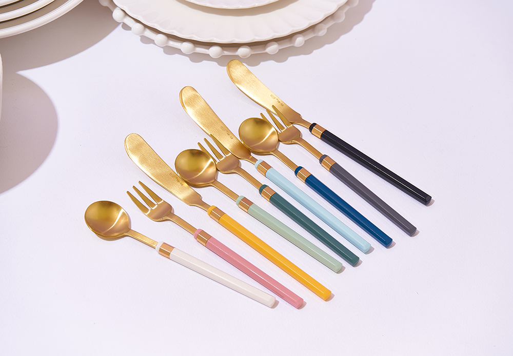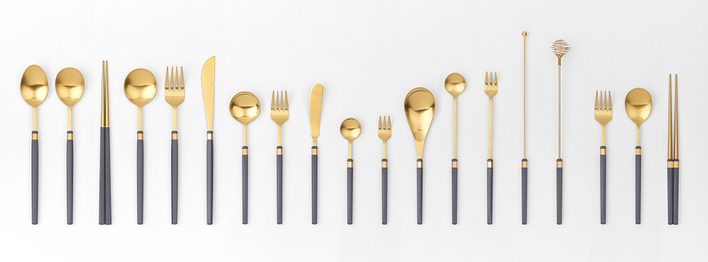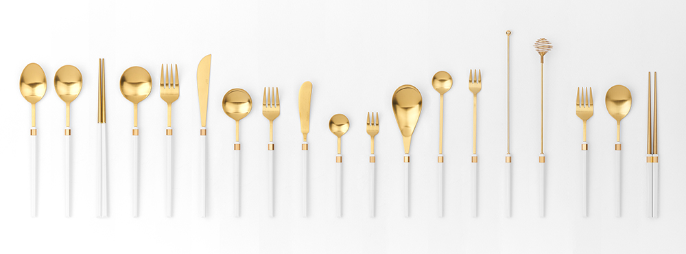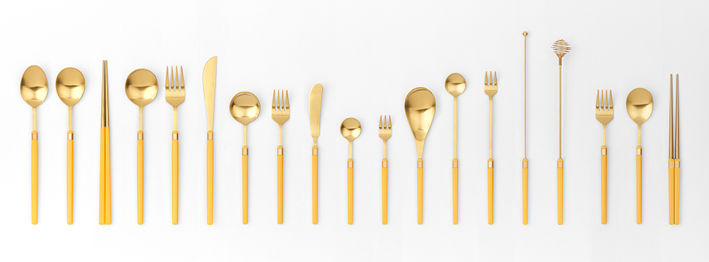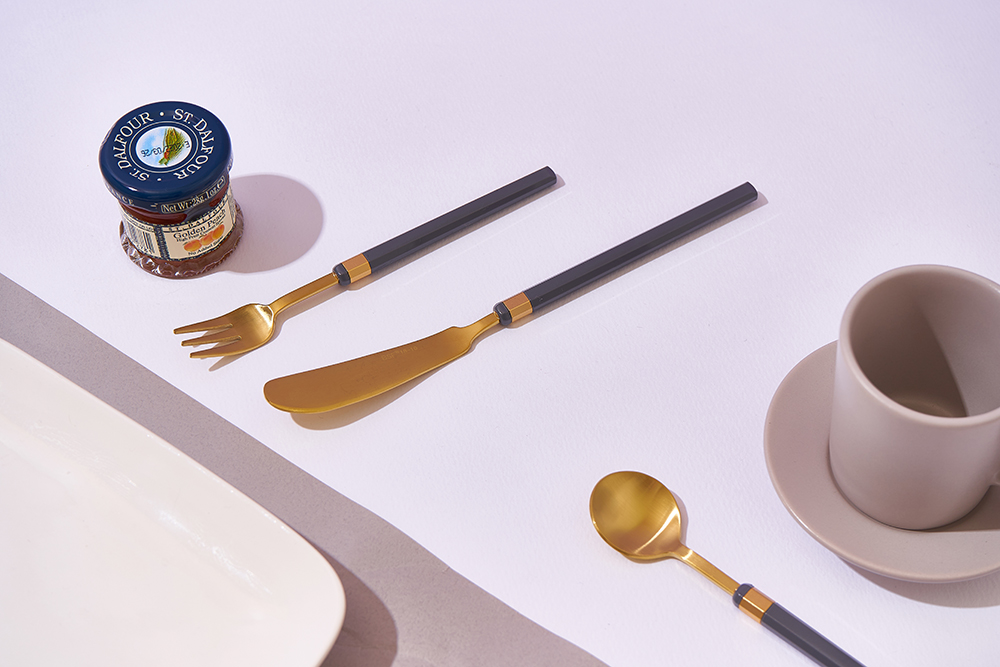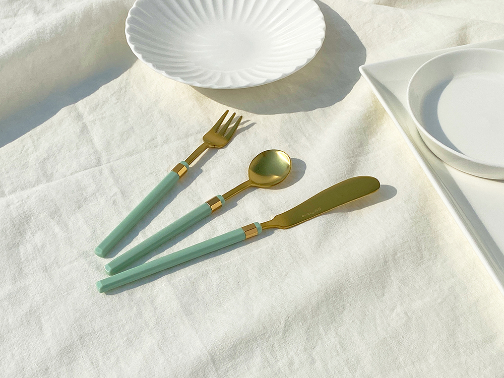 소재 | 18-10 스테인리스 (SUS 304) (디너 나이프: SUS420J2) 골드: 티타늄 폴리카보네이트 (PC) |
