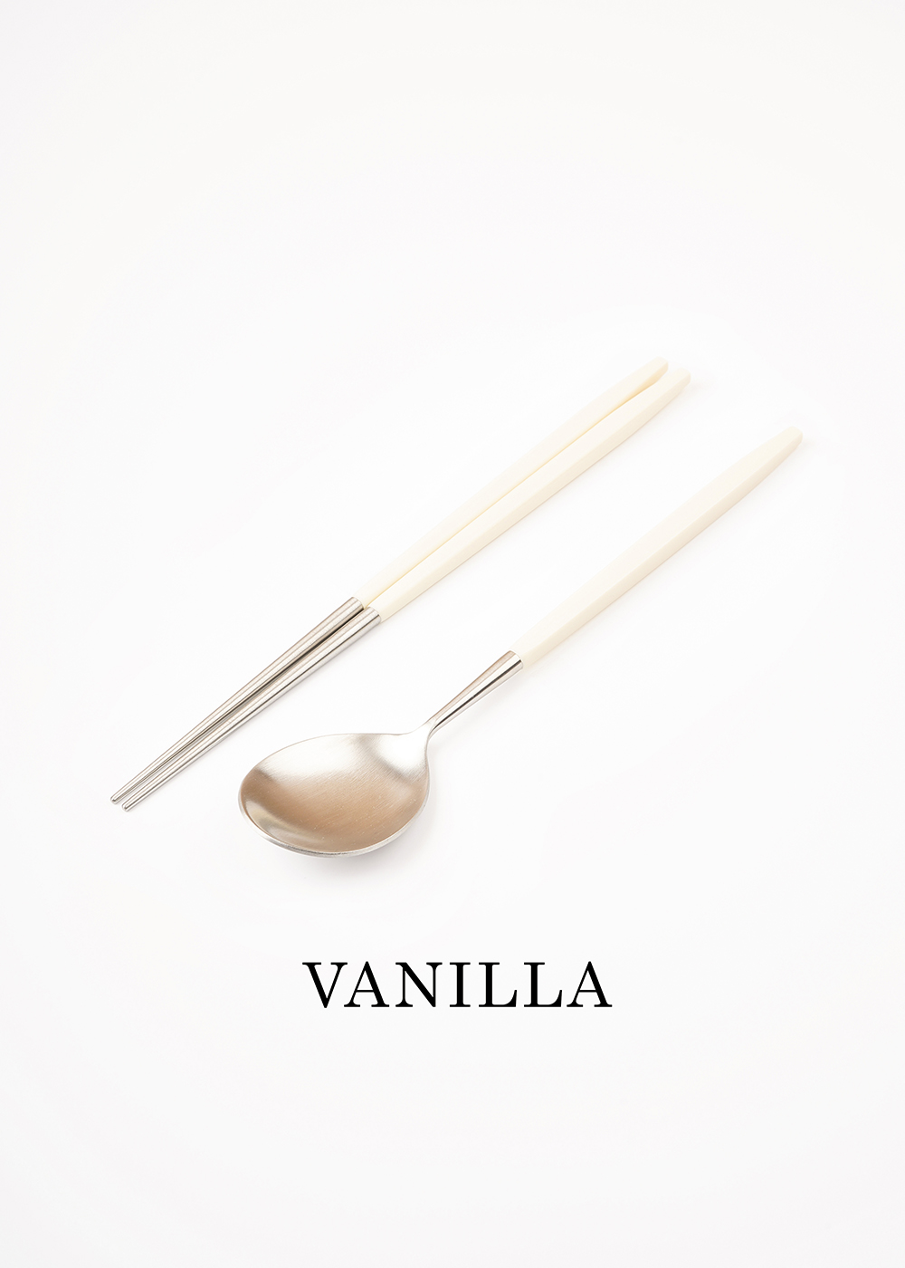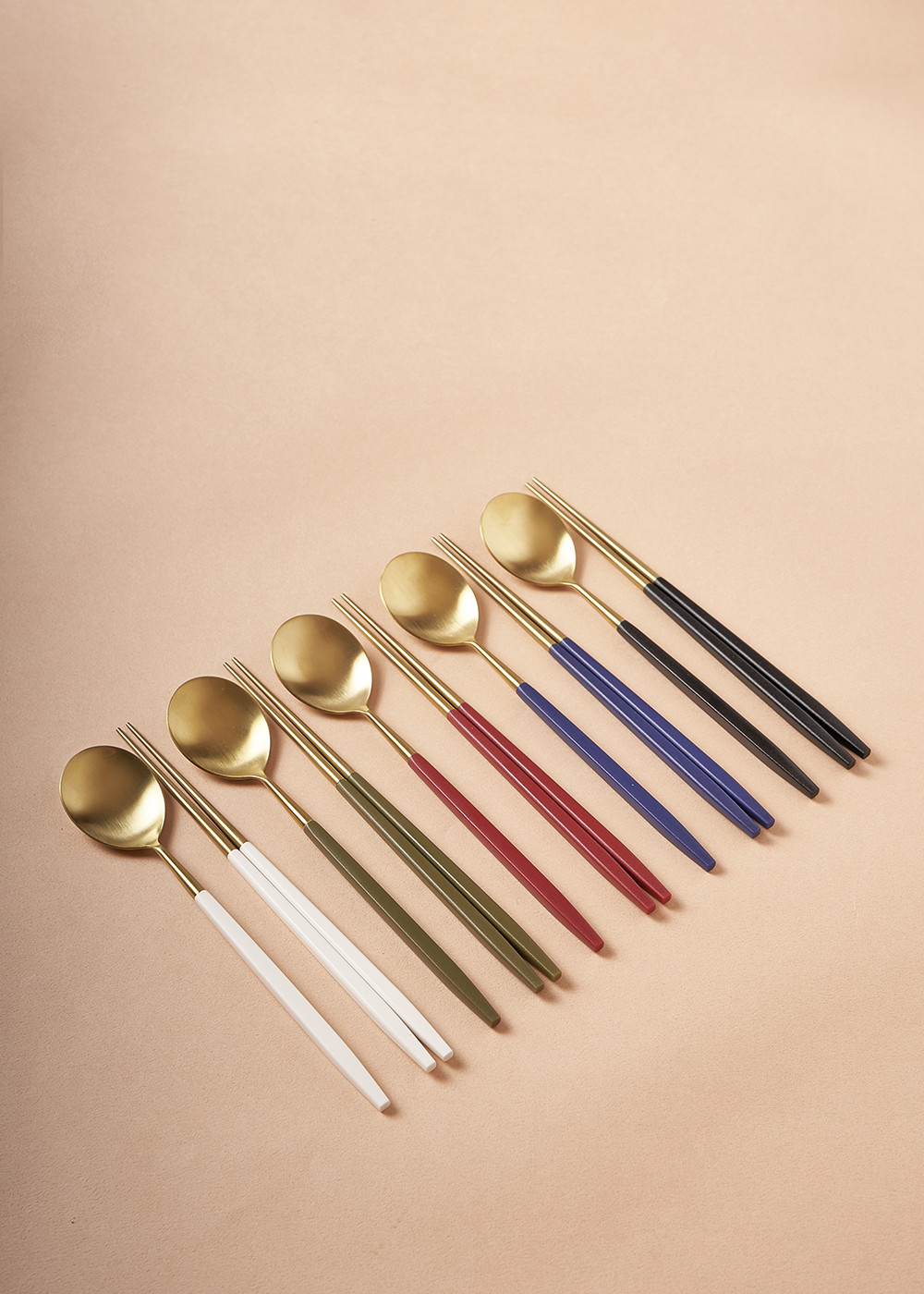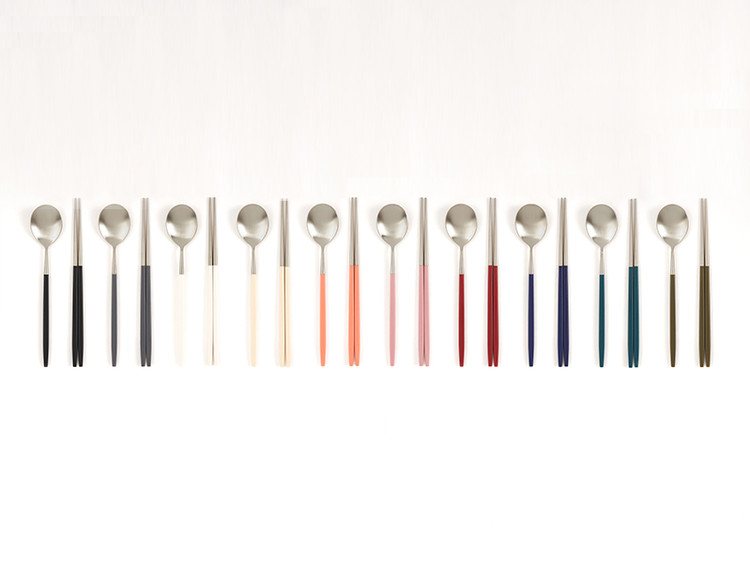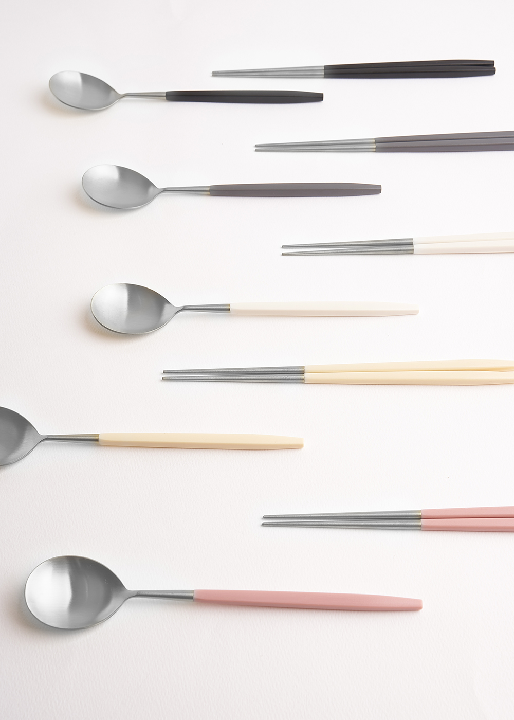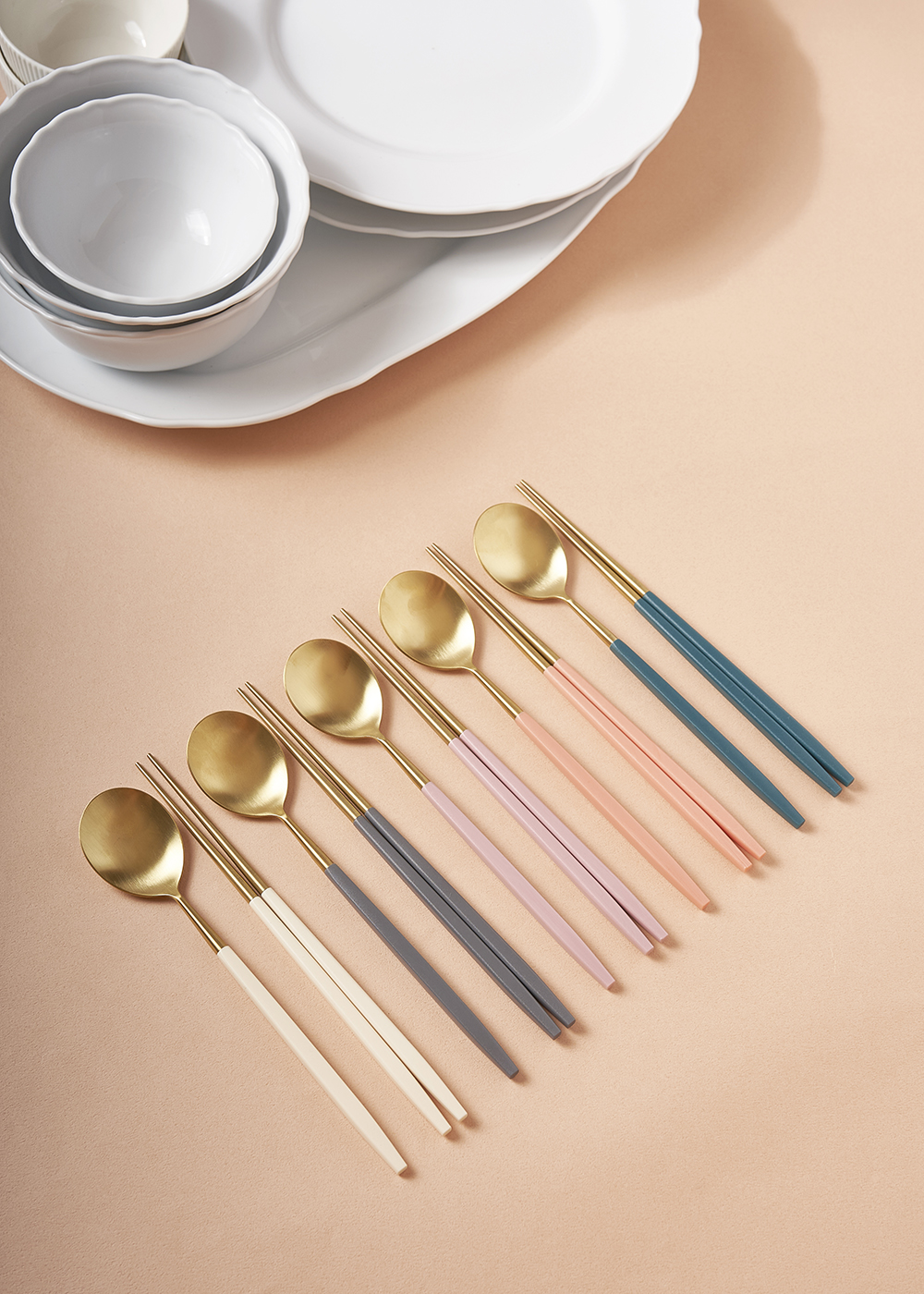 부드럽게 감기는 사각 핸들로 식탁이나 그릇 위에 놓아도 안정적이며 젓가락질이 매우 편한 아망뜨 수저세트입니다.