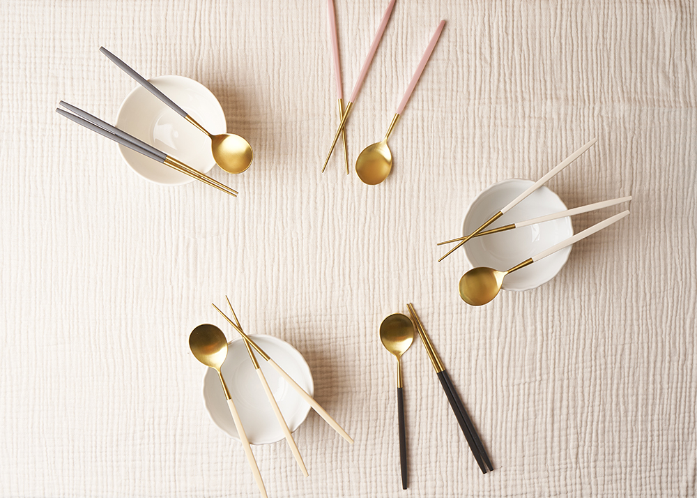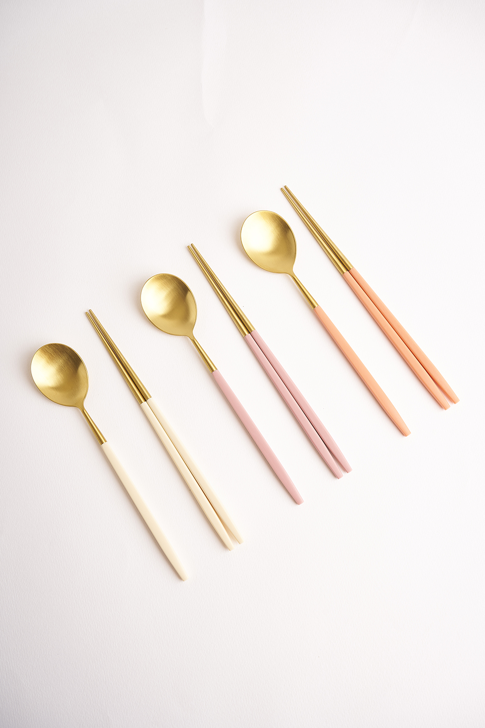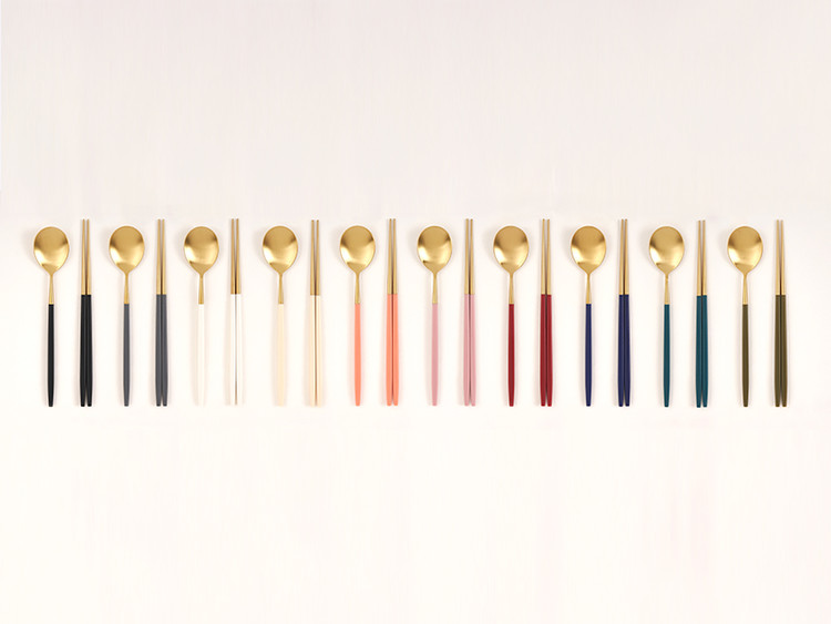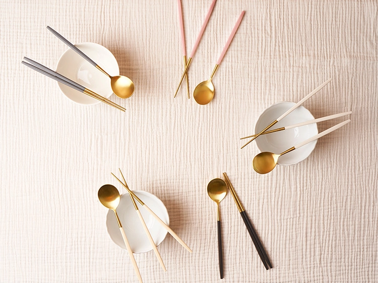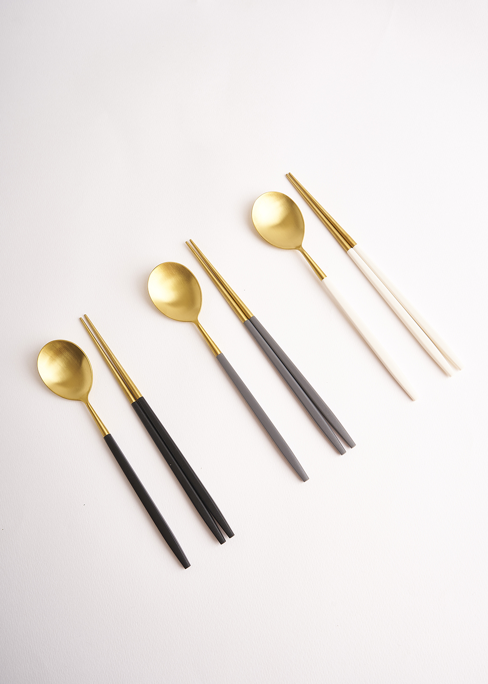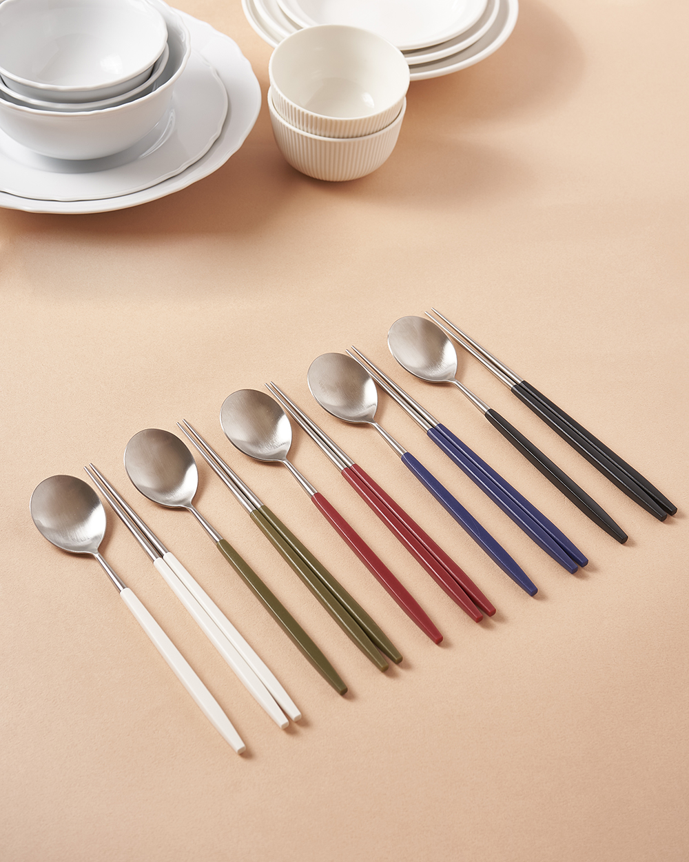 부드럽게 감기는 사각 핸들로 식탁이나 그릇 위에 놓아도 안정적이며 젓가락질이 매우 편한 아망뜨 수저세트입니다.
