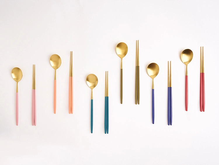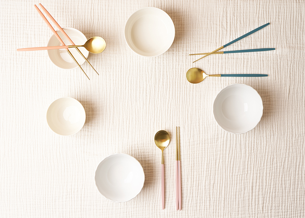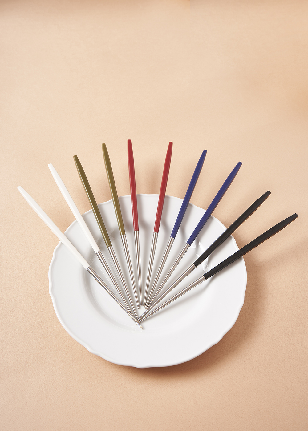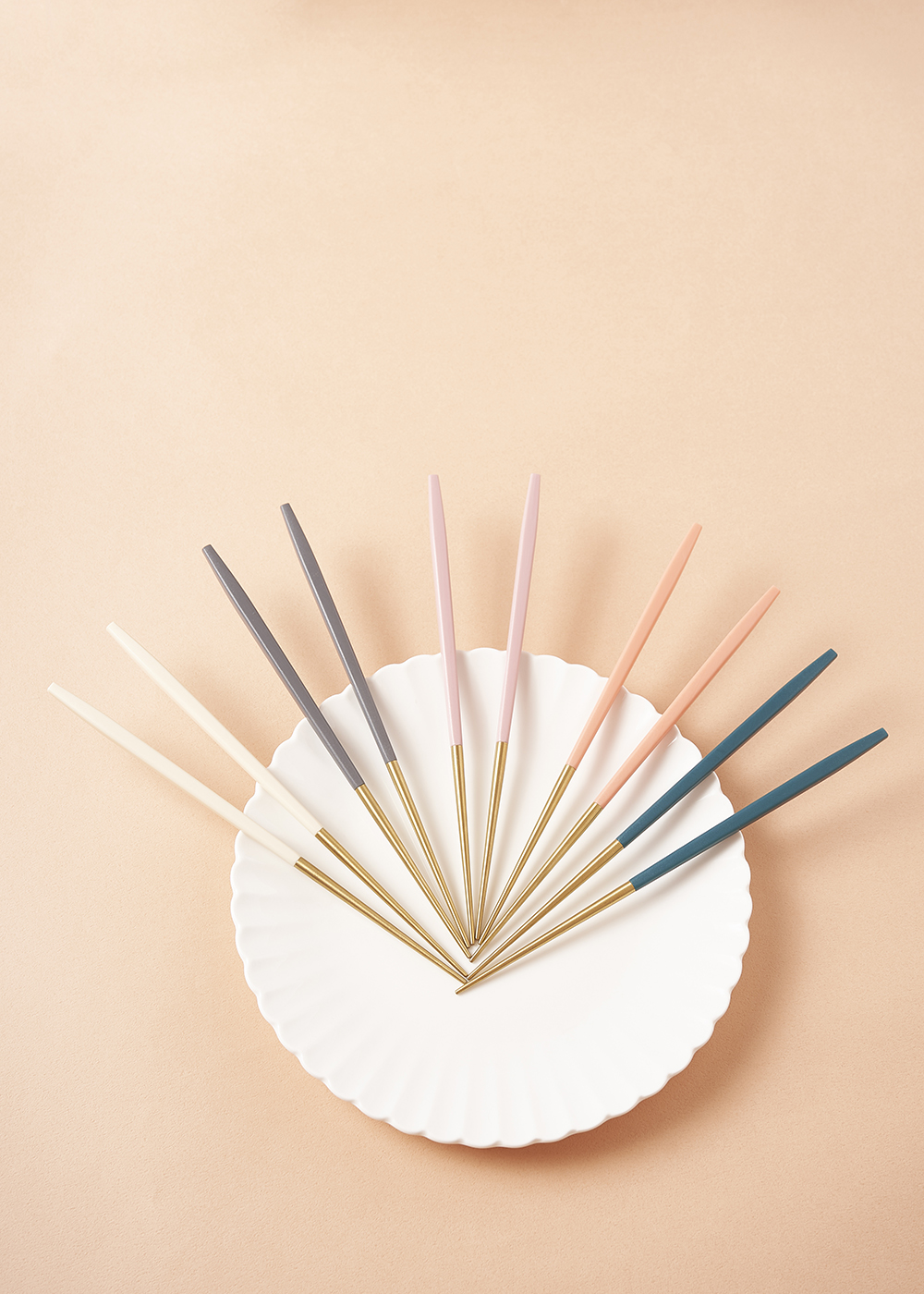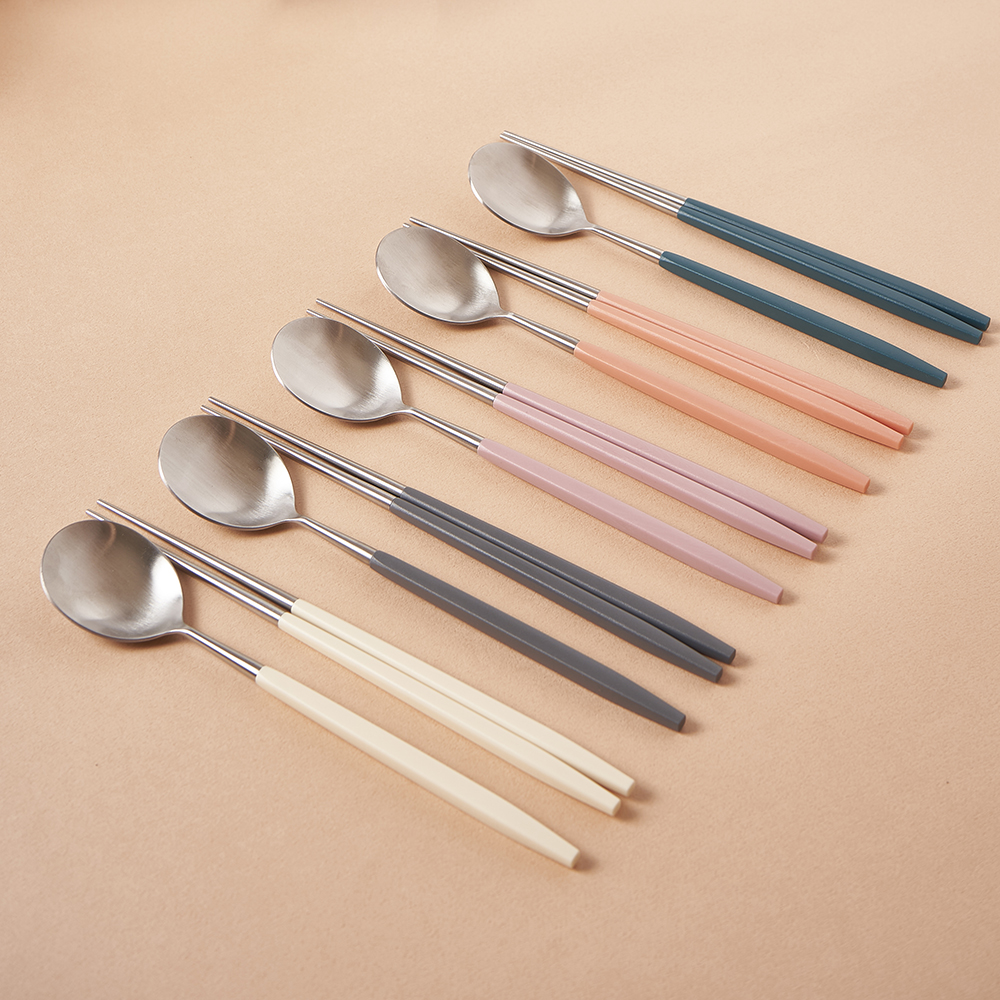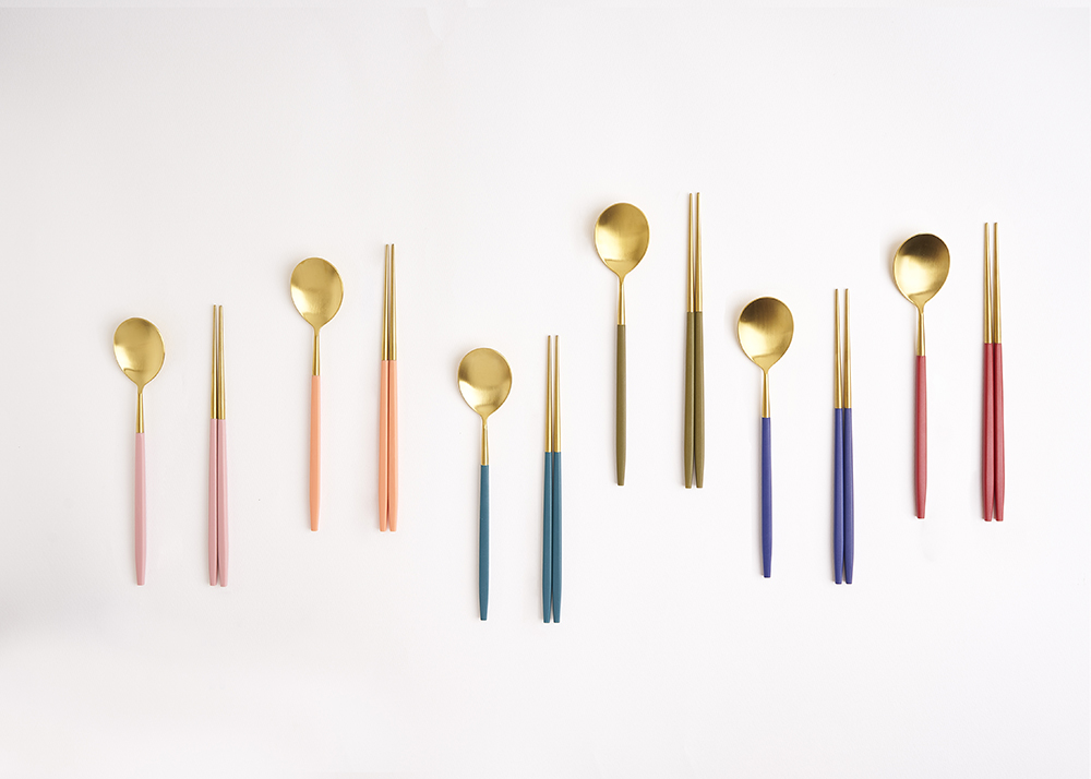부드럽게 감기는 사각 핸들로 식탁이나 그릇 위에 놓아도 안정적이며 젓가락질이 매우 편한 아망뜨 수저세트입니다.