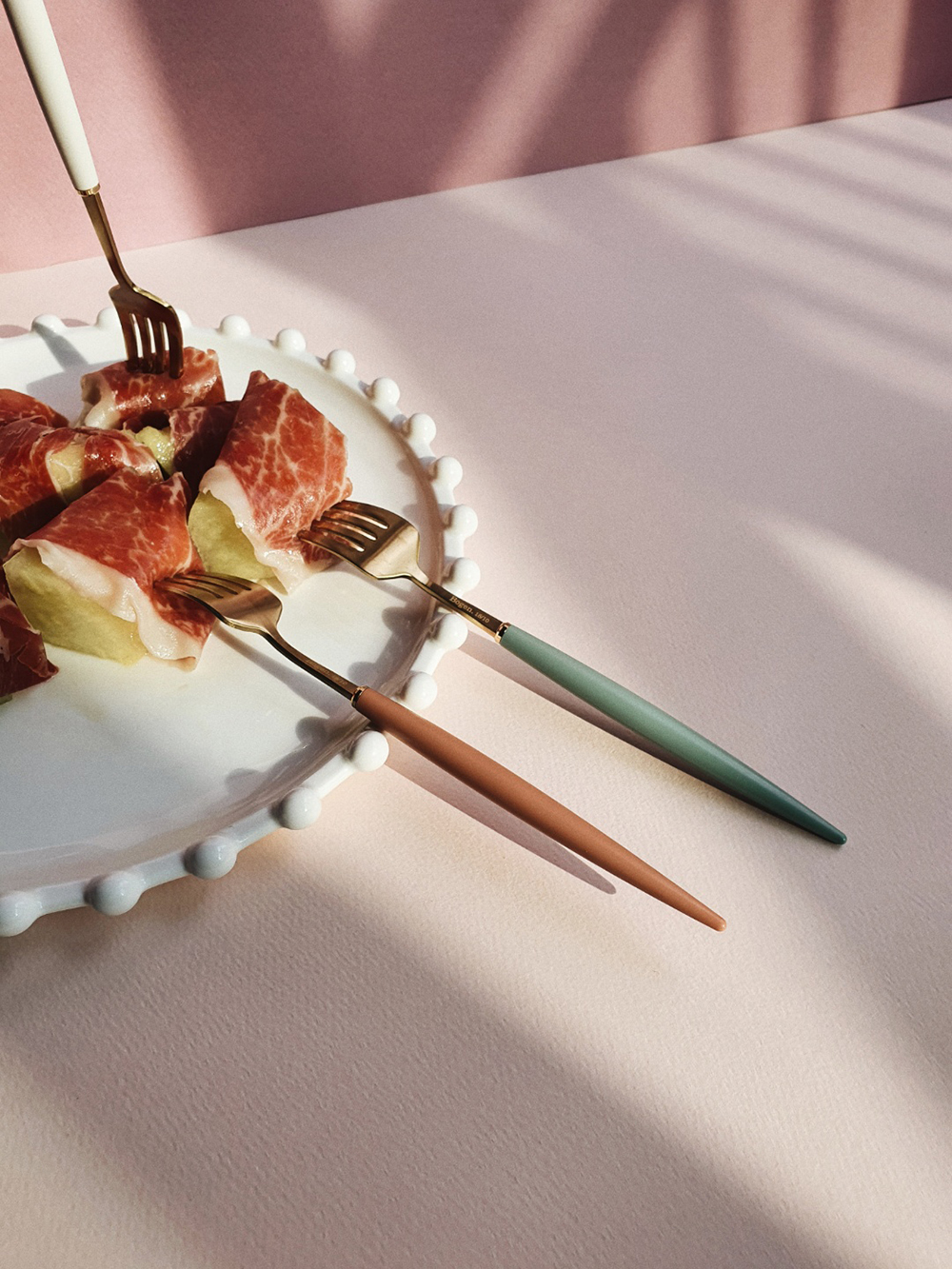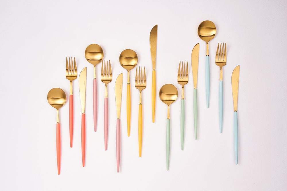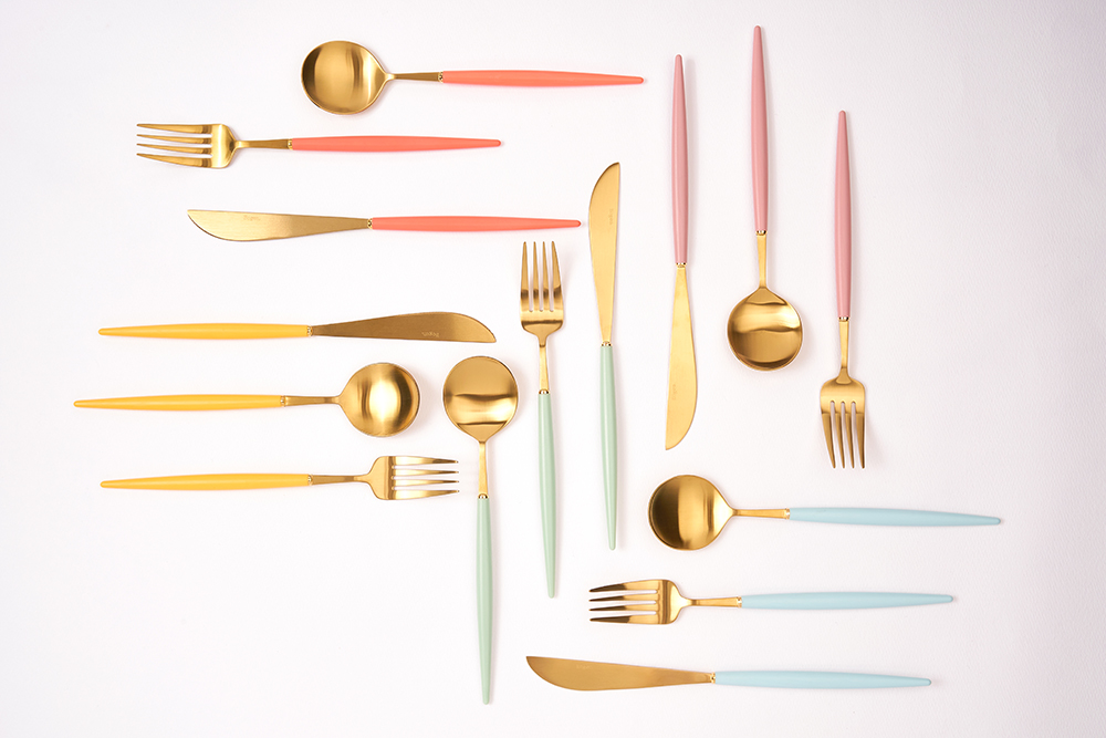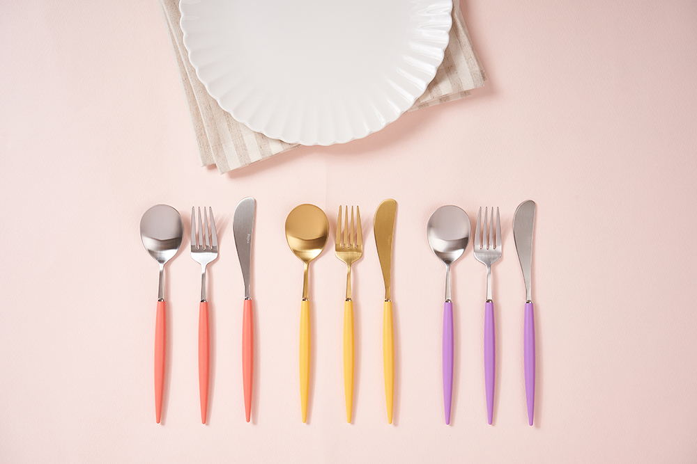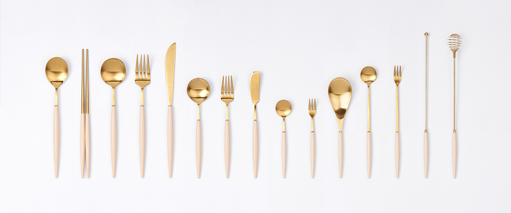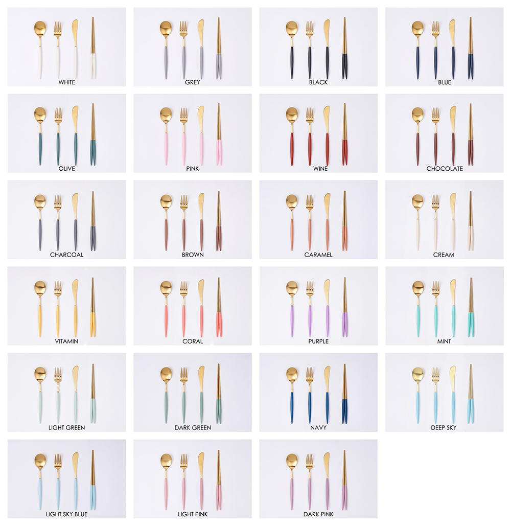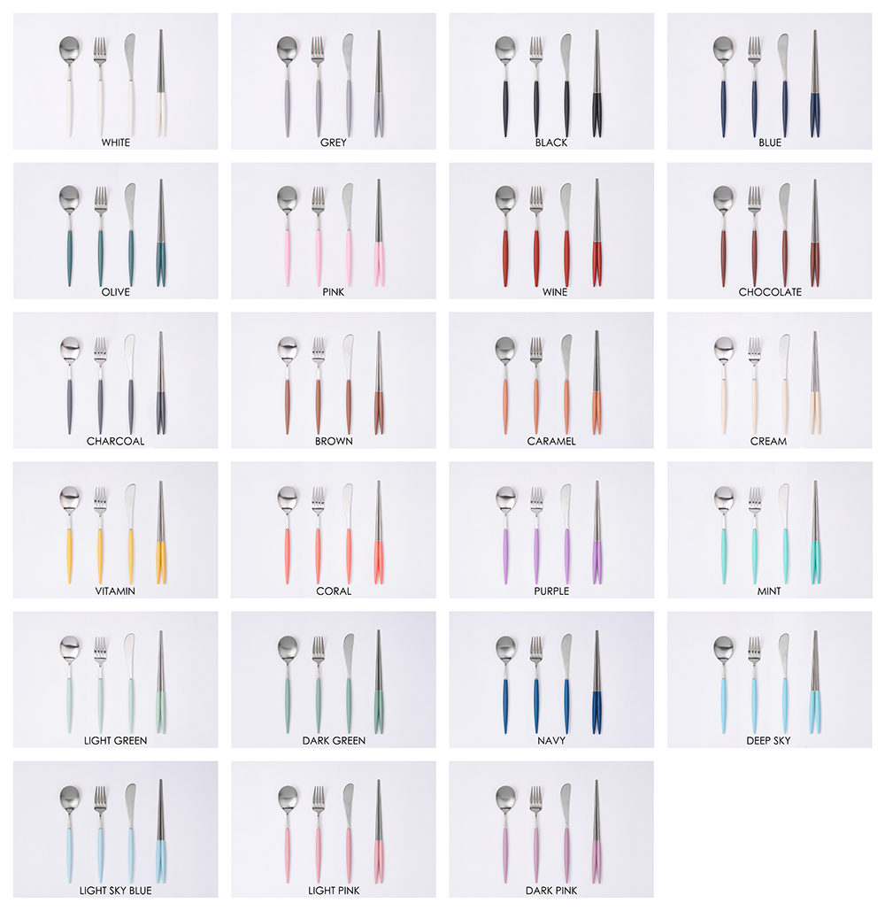 소재 | 18-10 스테인리스 (SUS 304) (디너 나이프: SUS420J2) 골드: 티타늄 폴리카보네이트 (PC) |