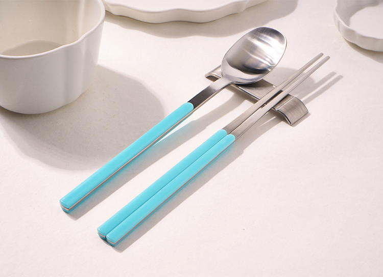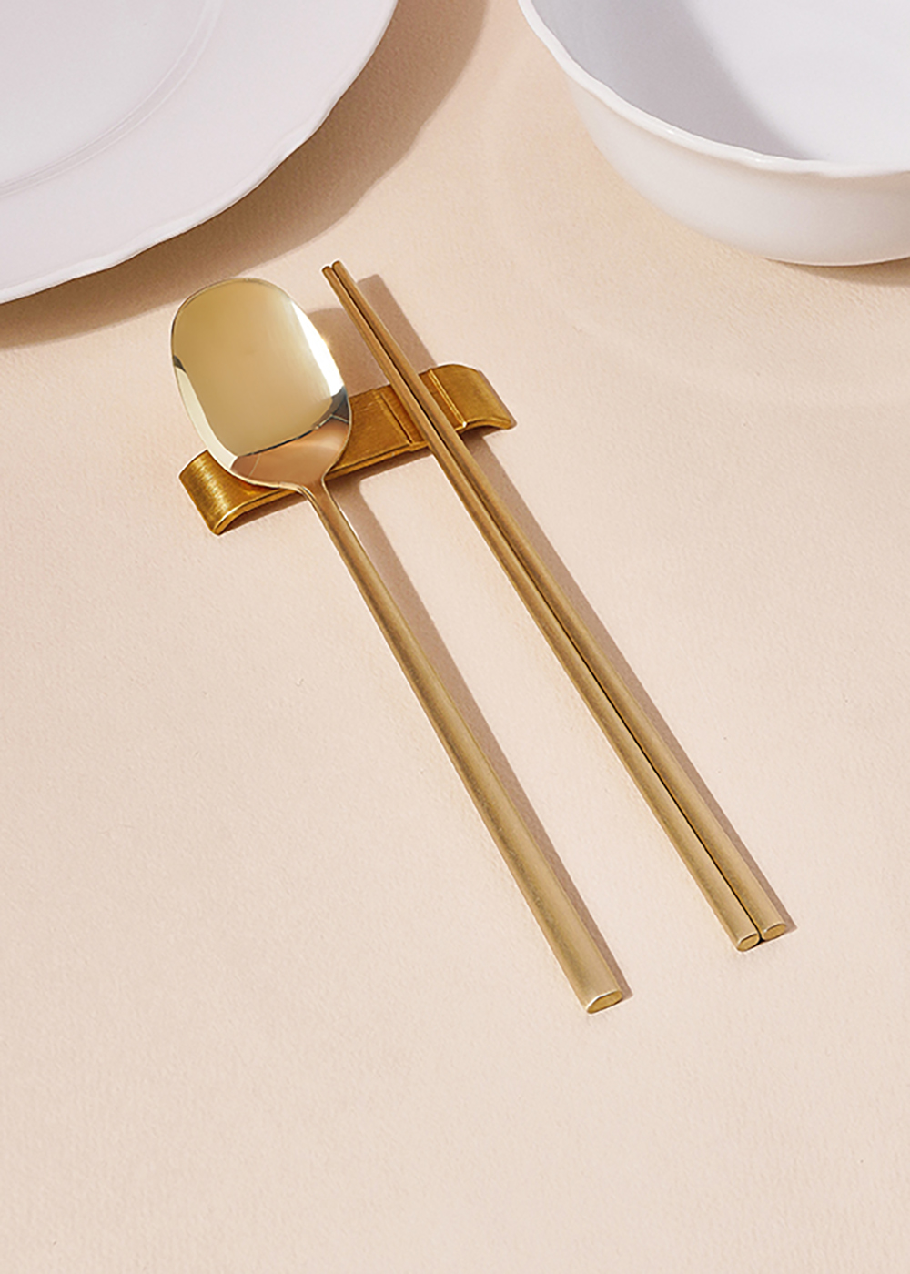 묵직한 무게감으로 안정적이고, 수저와 젓가락 놓는 부분에 약간의 홈을 주어