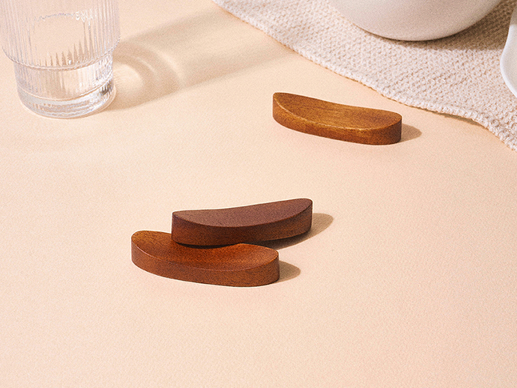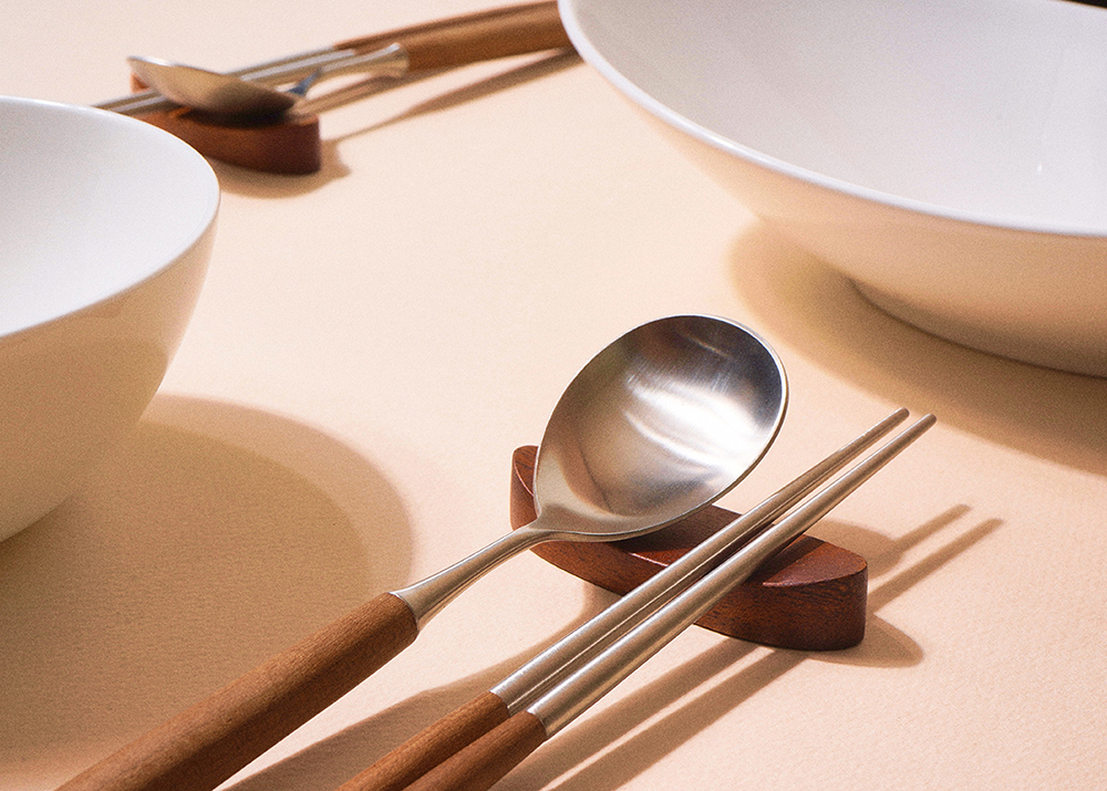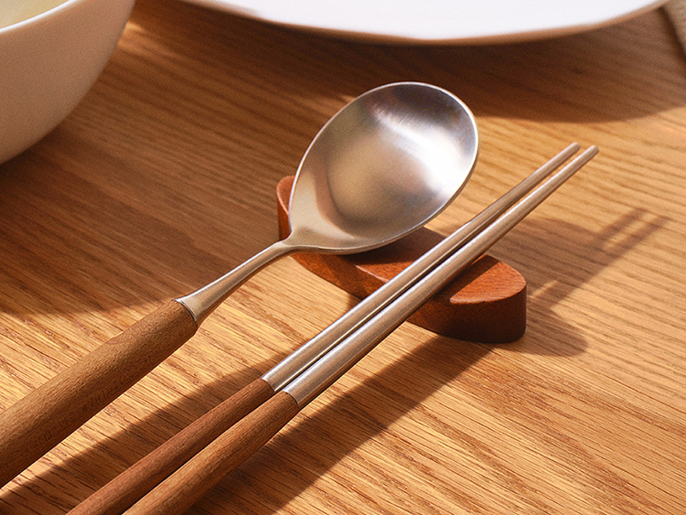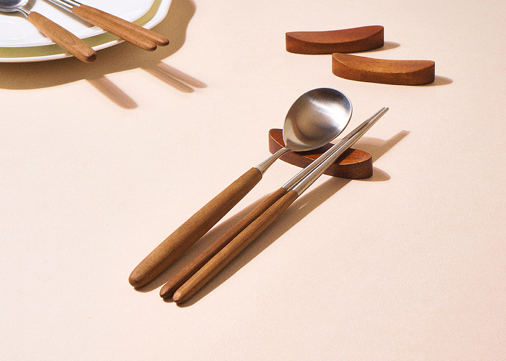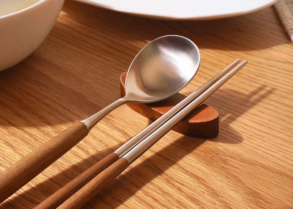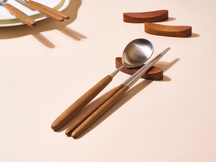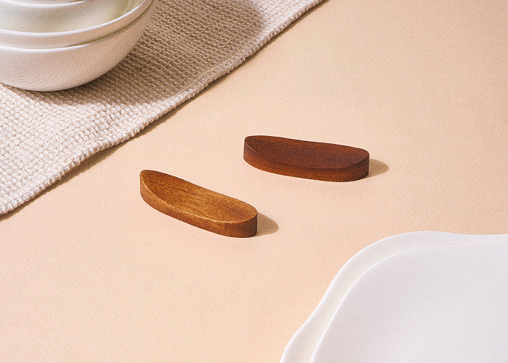 은은한 옻칠로 더해진 원목 자체의 우아한 자연미와 미니멀한 디자인으로 고급스러움이 물씬 느껴지는 수저받침 세트입니다.