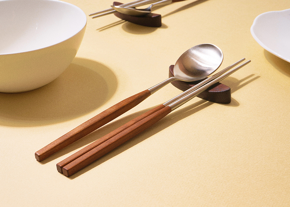 은은한 옻칠로 더해진 원목 자체의 우아한 자연미와 미니멀한 디자인으로 고급스러움이 물씬 느껴지는 수저받침 세트입니다.