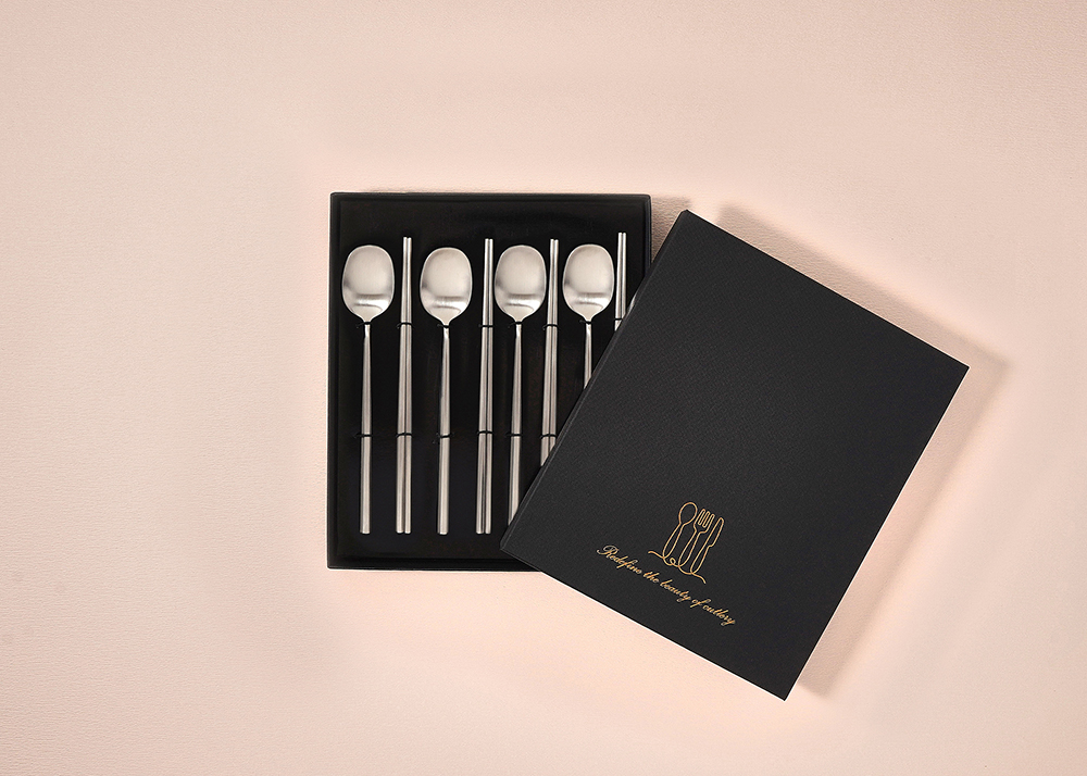 호불호 없고 어디에나 잘 어울리는 디자인으로 신혼부부, 집들이 등 선물용으로 매우 적합한 2인, 4인 수저세트 구성입니다.