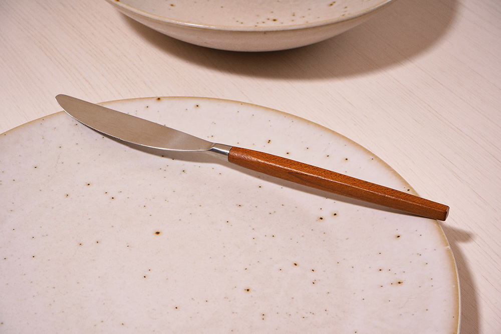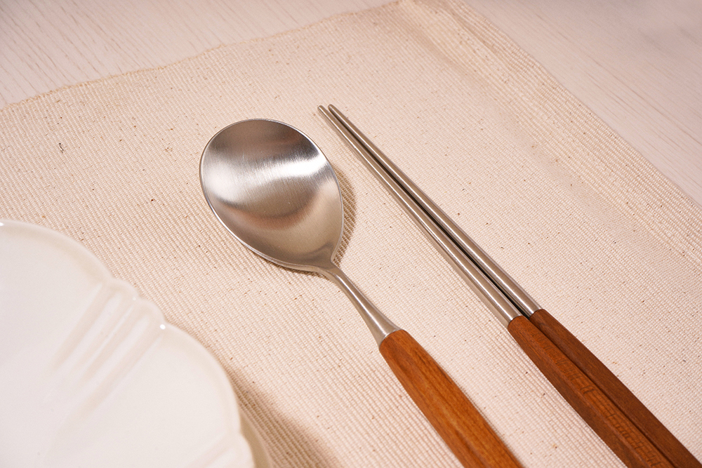 소재 | 18-10 스테인리스 (SUS 304) (디너 나이프: SUS420J2), 하드 메이플 우드, 옻칠 : 국내 생산 |