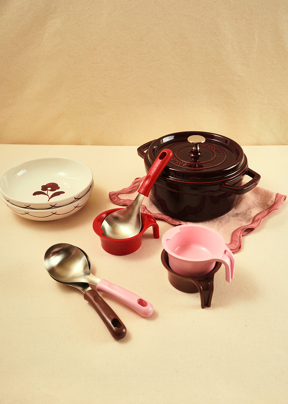 조리시 국자에 국물이나 양념이 묻어 있어도 스푼 받침에 올려두어 깔끔하게 사용할 수 있으며,