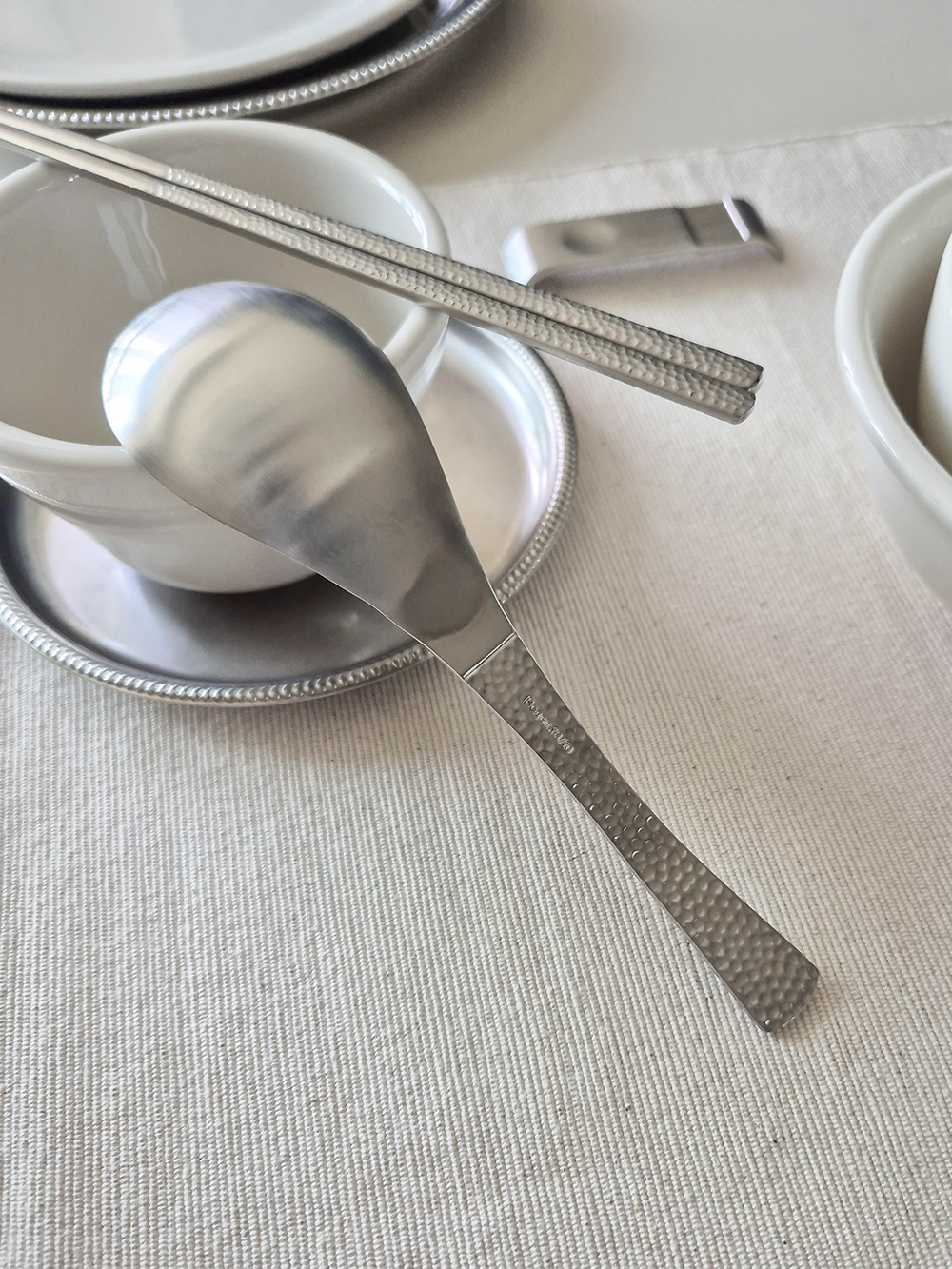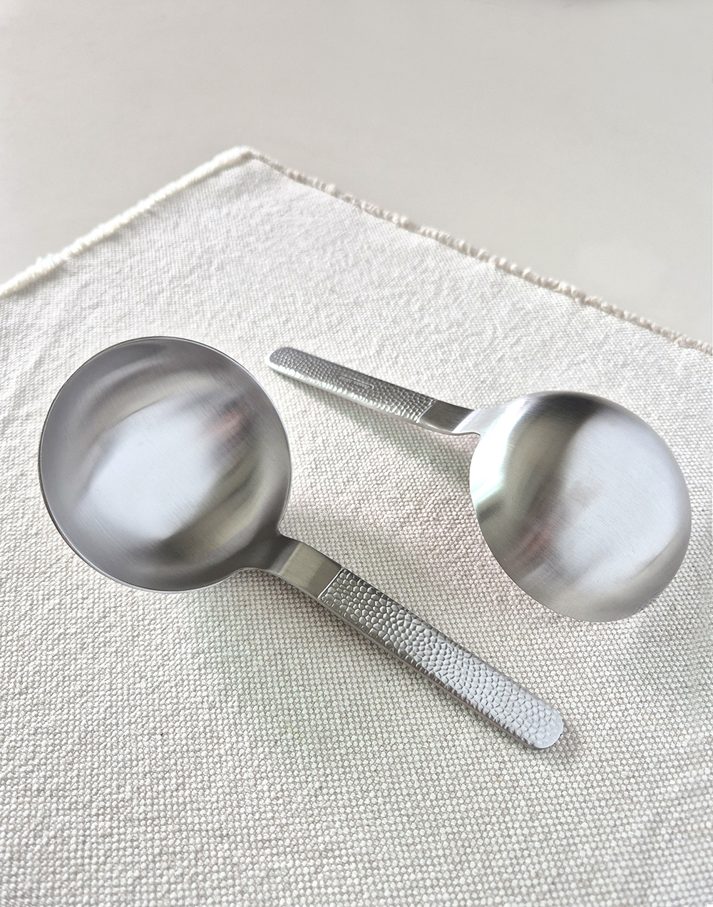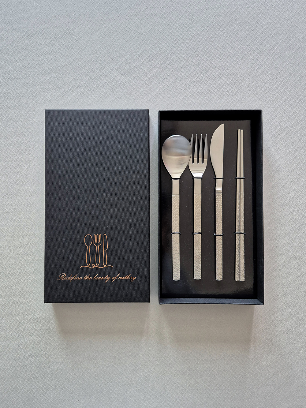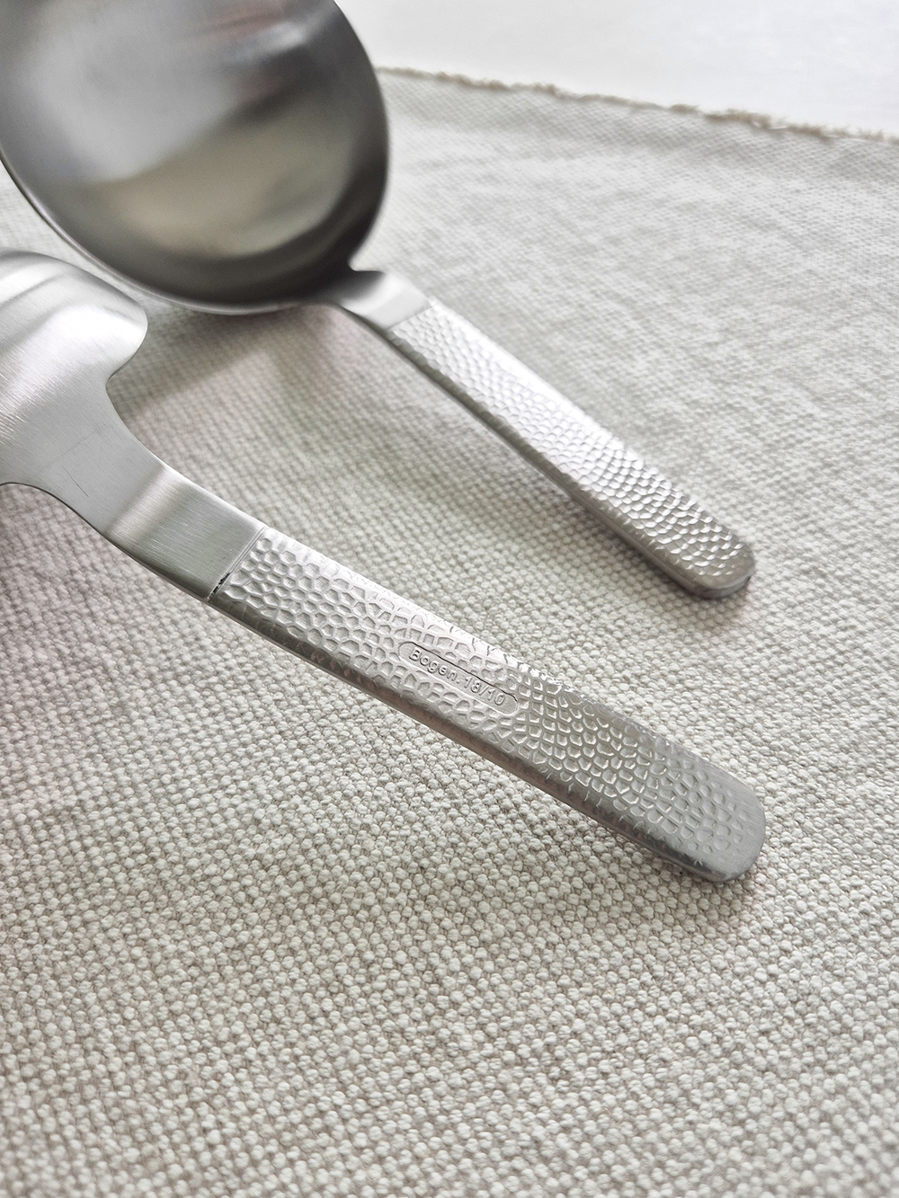 유행타지 않는 해머드 텍스쳐와 심플한 직사각 쉐입으로 디자인된 군더더기 없는 세련된 타임리스 커트러리 입니다.