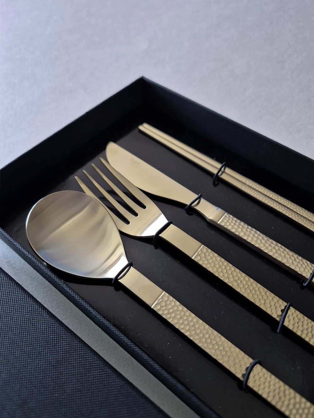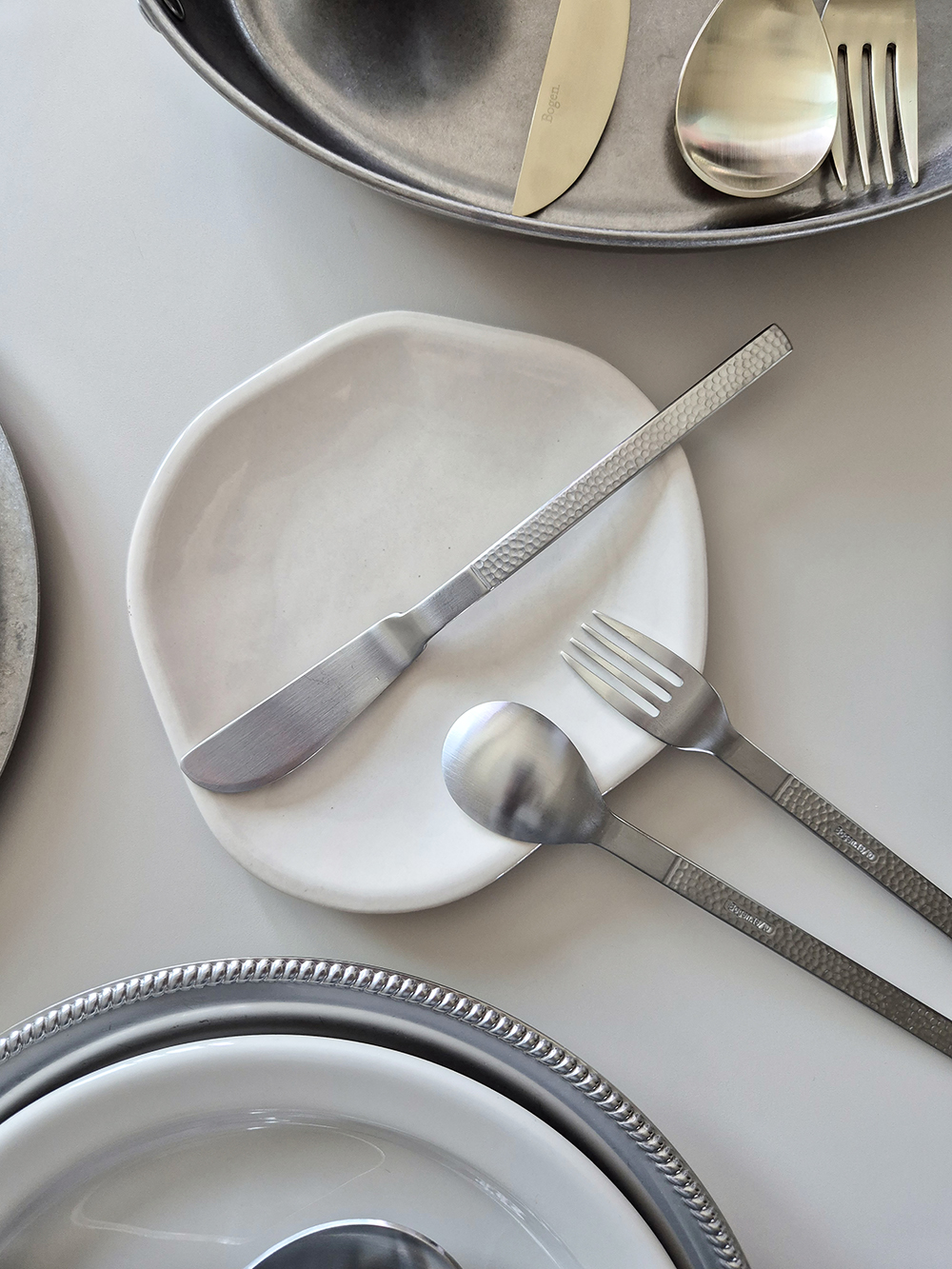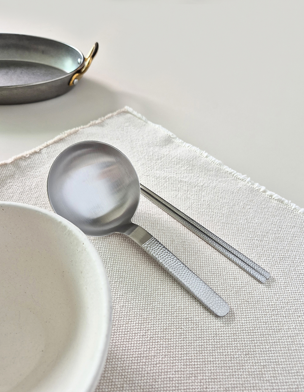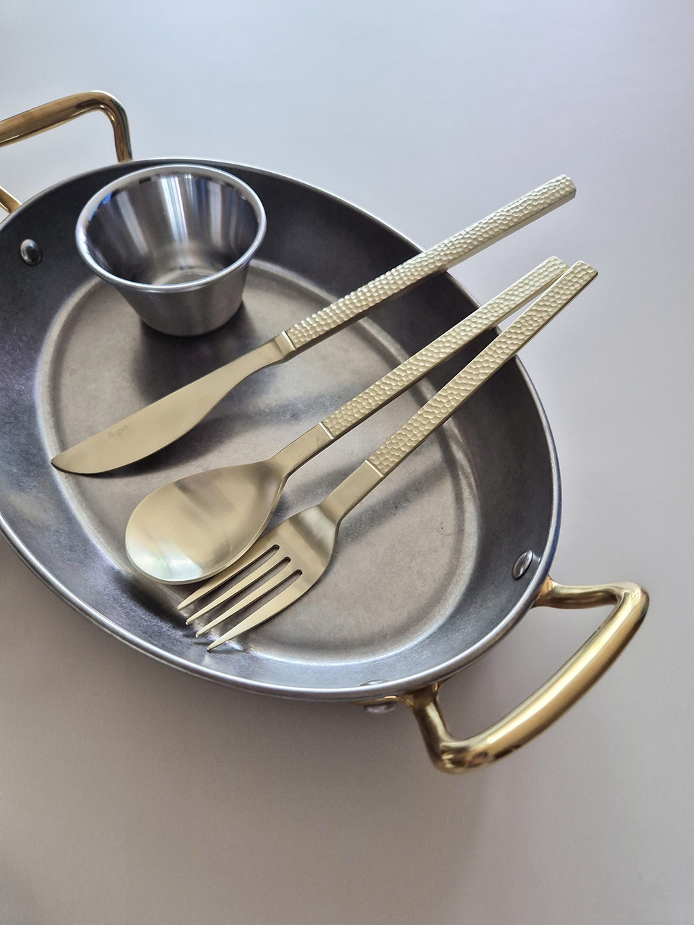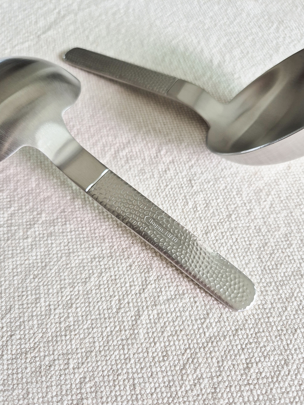 유행타지 않는 해머드 텍스쳐와 심플한 직사각 쉐입으로 디자인된 군더더기 없는 세련된 타임리스 커트러리 입니다.