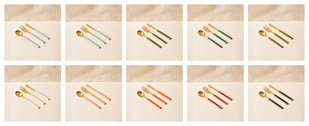 파스텔부터 비비드한 컬러까지 다양한 핸들 컬러 옵션으로 취향에 맞게 테이블 연출 가능합니다.
